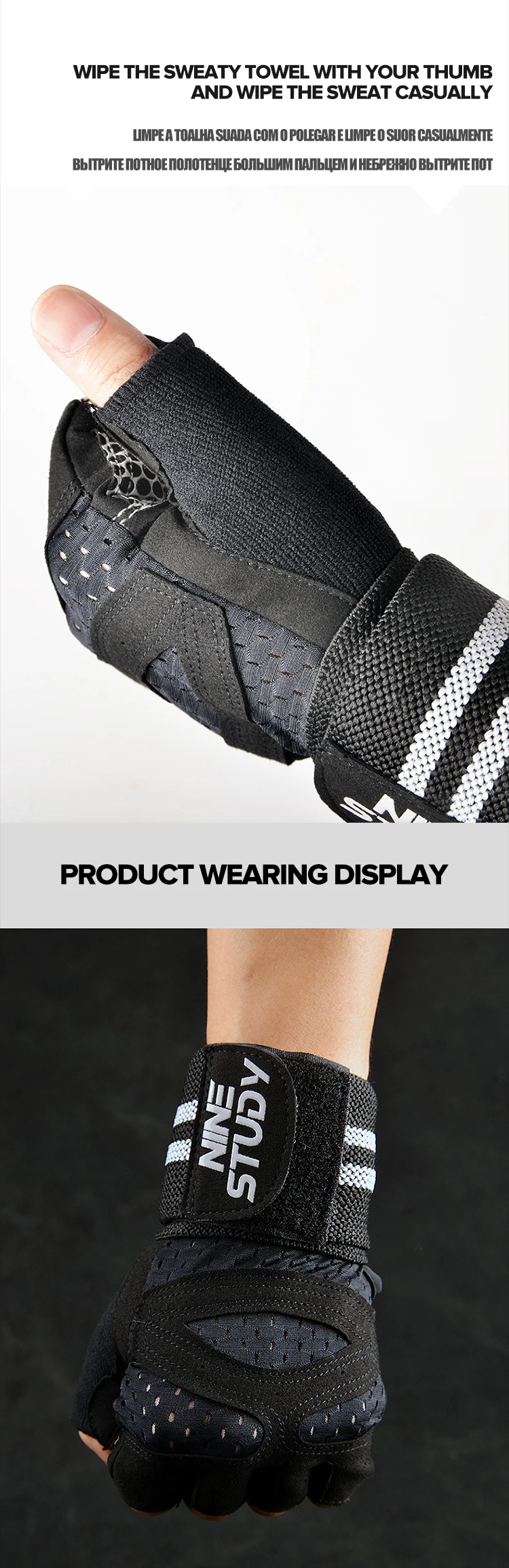 Guantes de gimnasio con ajuste en las muñecas.